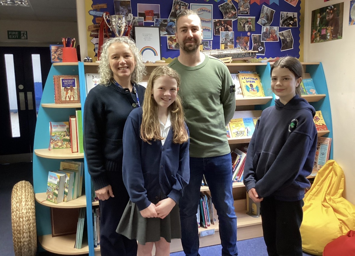 Pictured is Wynn oundation Trustee – Josh – with children and staff of High Ercall Primary School.